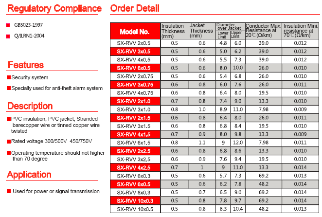 Fire&Alarm Cable RVV Series ↔♥$§