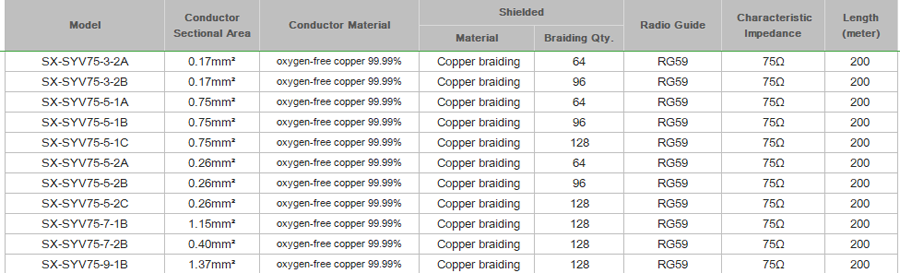 Coaxial Cable (Copper Braid>×→βing Series) for CCTV&Secur'ity