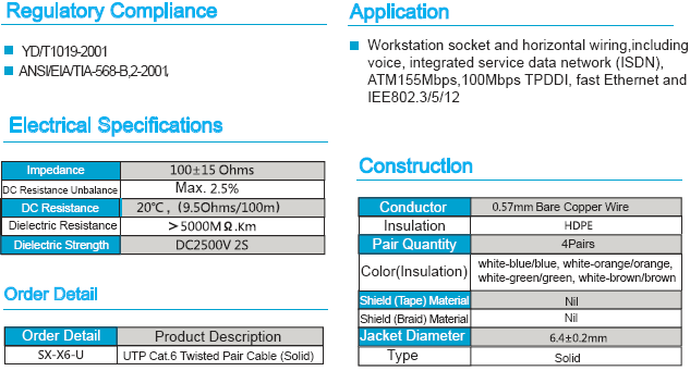 UTP Cat.6A Twisted Pair Cable (Solid)'π'