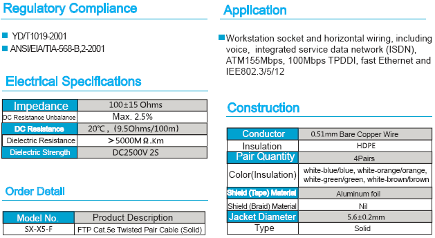 FTP Cat.5e Twisted Pair Cable (Solid§Ω)